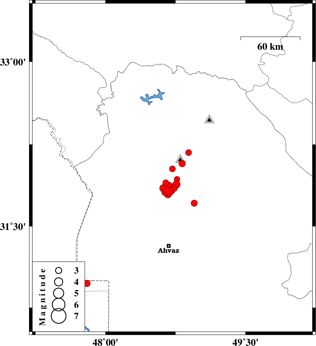 2018/03/27 23:07:52.4 03:37:52.4 31.83148.714 ML4.1 Khoozestan Province, 28 km South-West of Shushtar