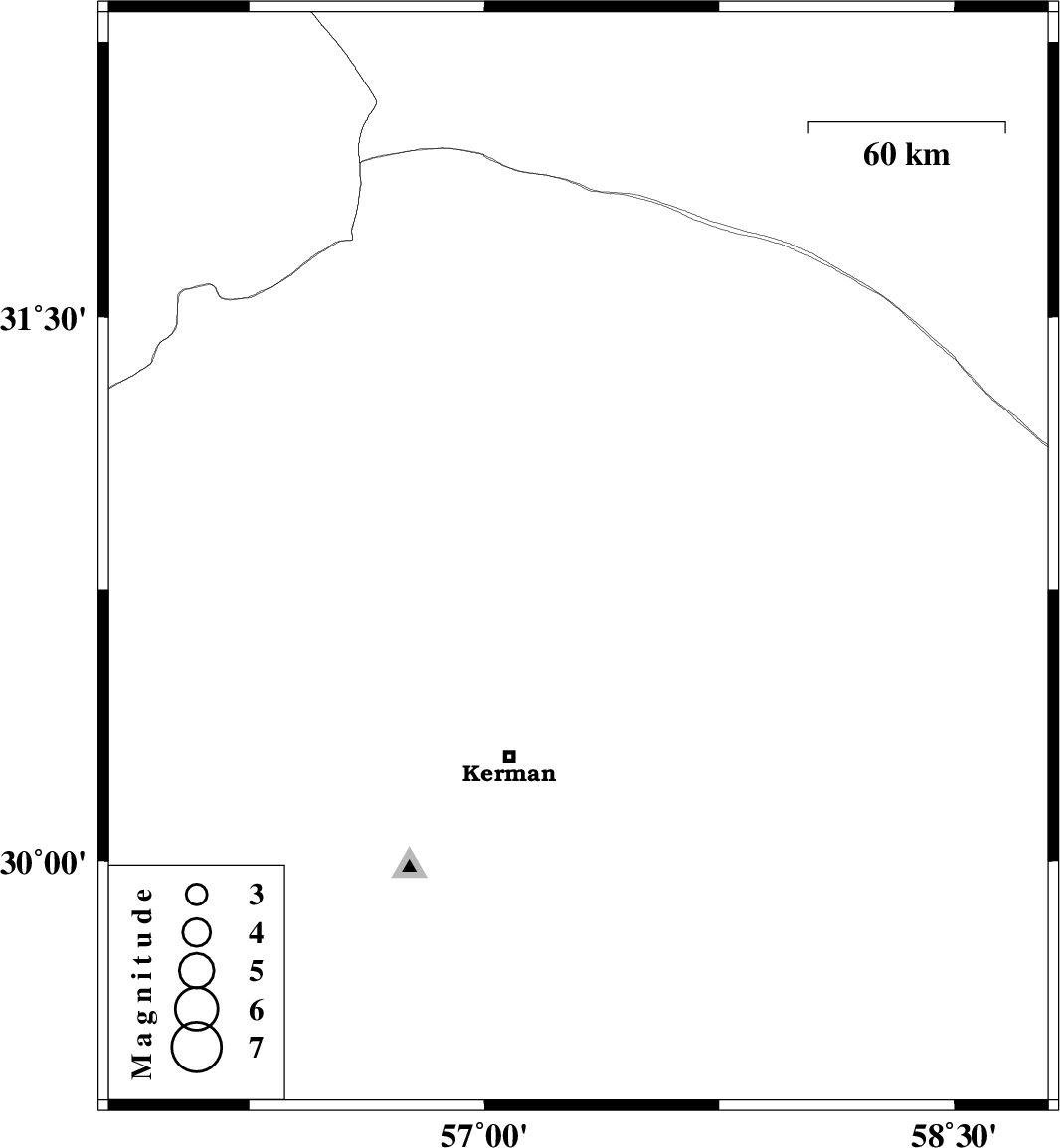 | 2018/03/29 | 23:06:22.4 | 03:36:22.4 | 30.833 | 57.3 | 14 | ML2.8 | Kerman Province, 70 km -East of Zarand |