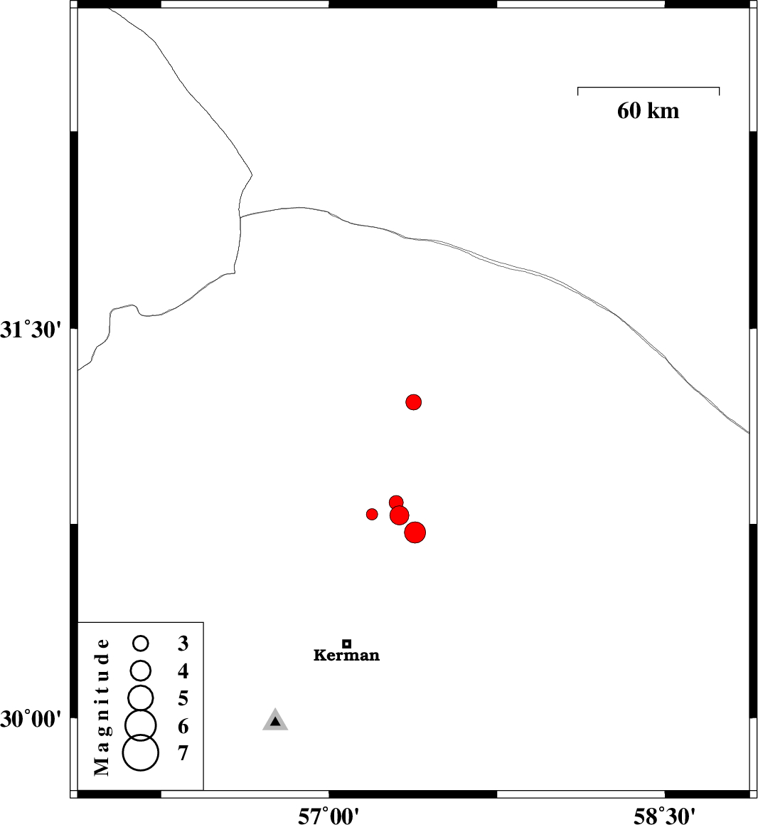 2018/03/30 23:08:00.6 03:38:00.6 30.78457.31415 ML3.8 Kerman Province, 60 km North-East of Kerman