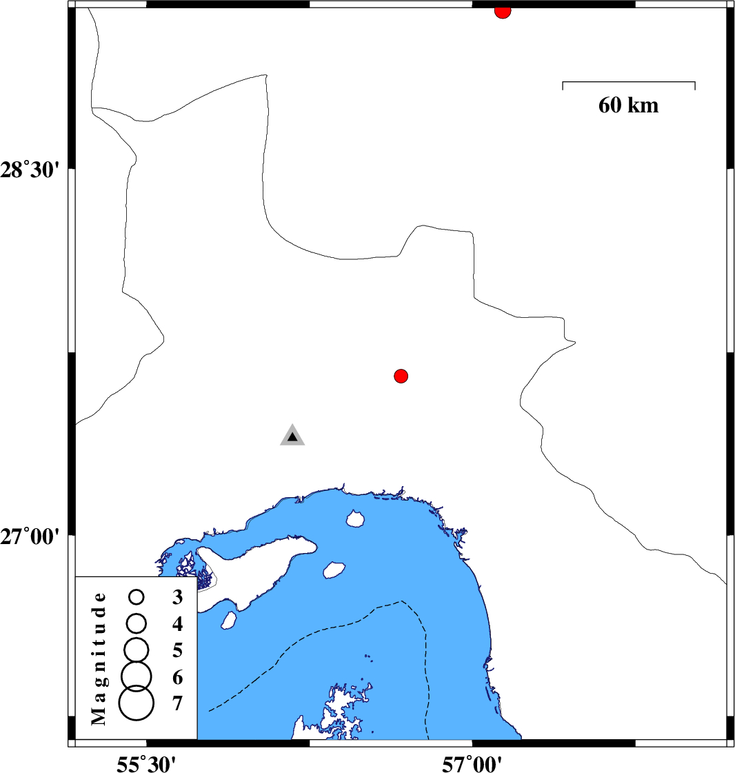 | 2018/03/30 | 11:58:12.0 | 16:28:12.0 | 27.653 | 56.671 | 17 | ML2.8 | Hormozgan Province, 61 km North-West of Dehbarez |