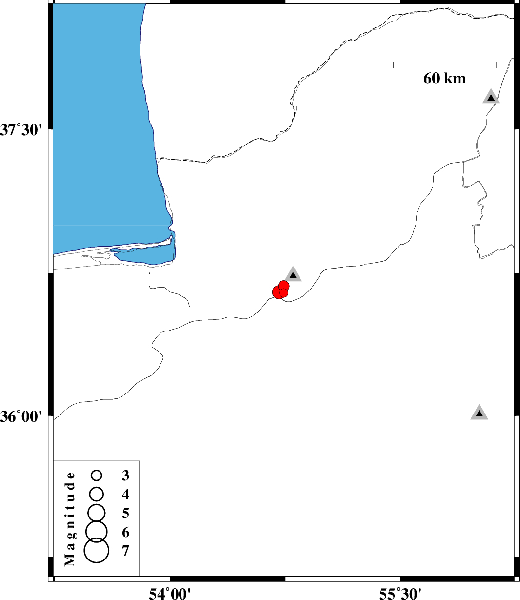 | 2018/05/23 | 00:56:10.2 | 05:26:10.2 | 36.647 | 54.739 | 14 | ML2.6 | Golestan Province, 31 km South-West of Ali Abad | ||