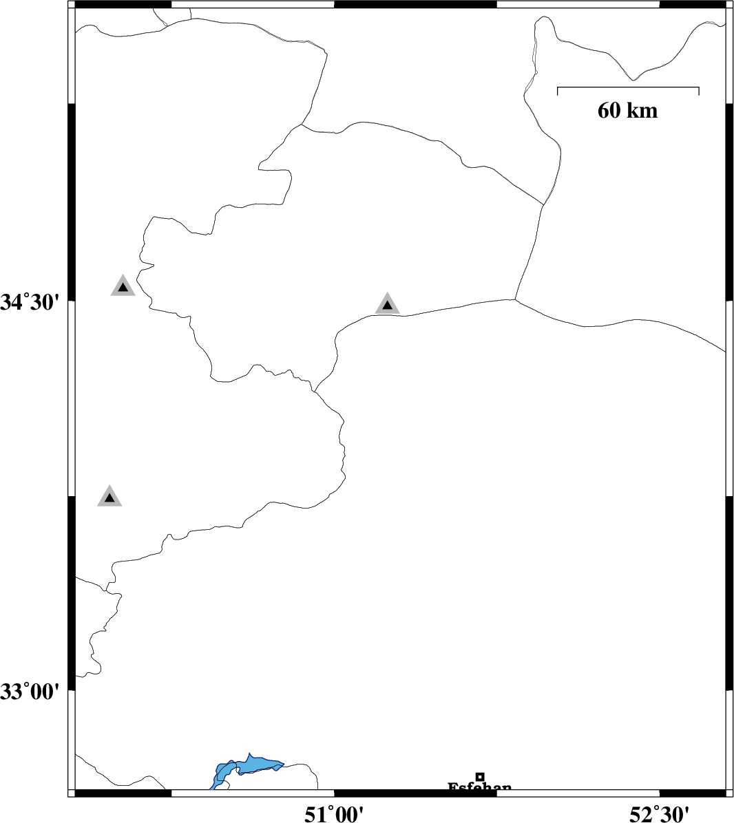 | 2018/05/22 | 16:56:16.8 | 21:26:16.8 | 34.112 | 51.305 | 43 | ML2.6 | Esfahan Province, 16 km -West of Aran va bidgol | ||