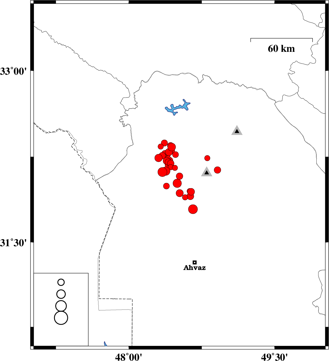 2018/05/27 02:51:44.5 07:21:44.5 32.0848.52215 ML3.1 Khoozestan Province, 31 km -West of Shushtar