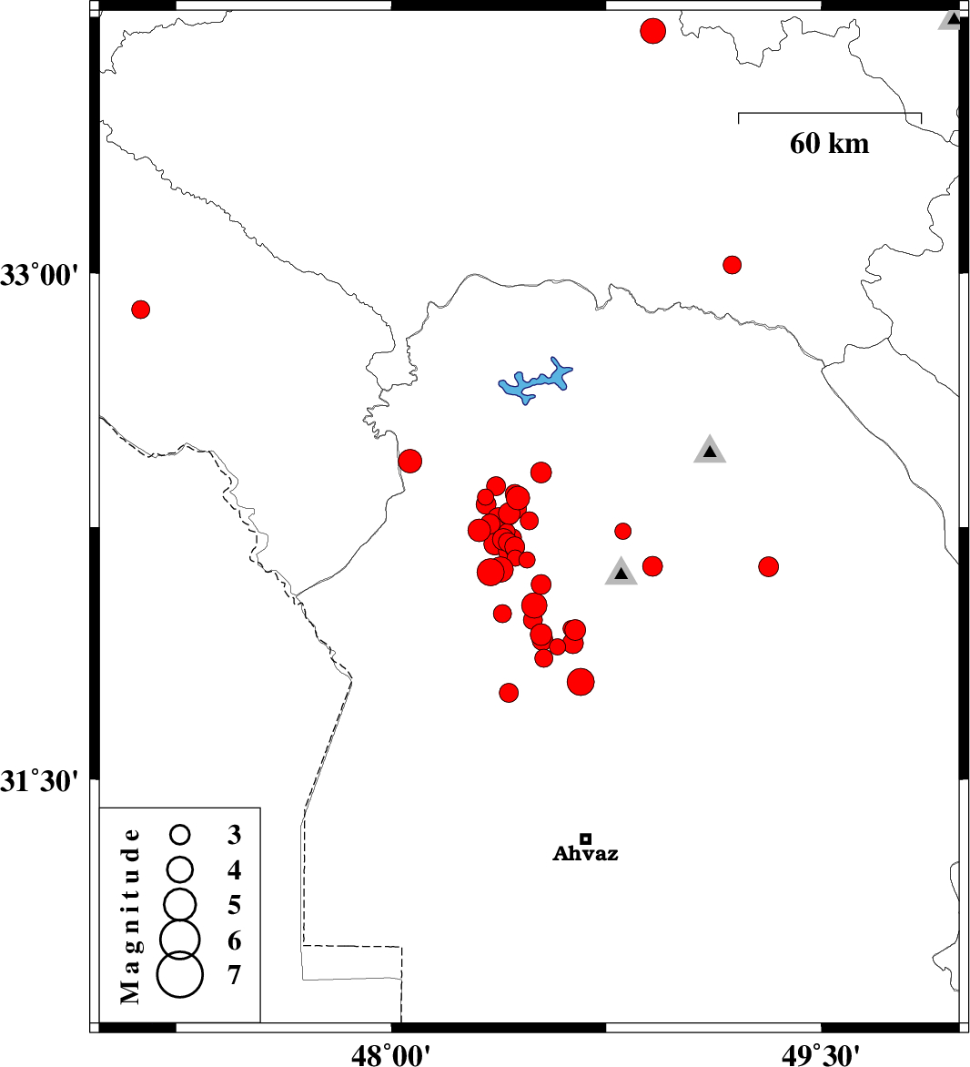 2018/05/27 02:51:44.5 07:21:44.5 32.0848.52215 ML3.1 Khoozestan Province, 31 km -West of Shushtar