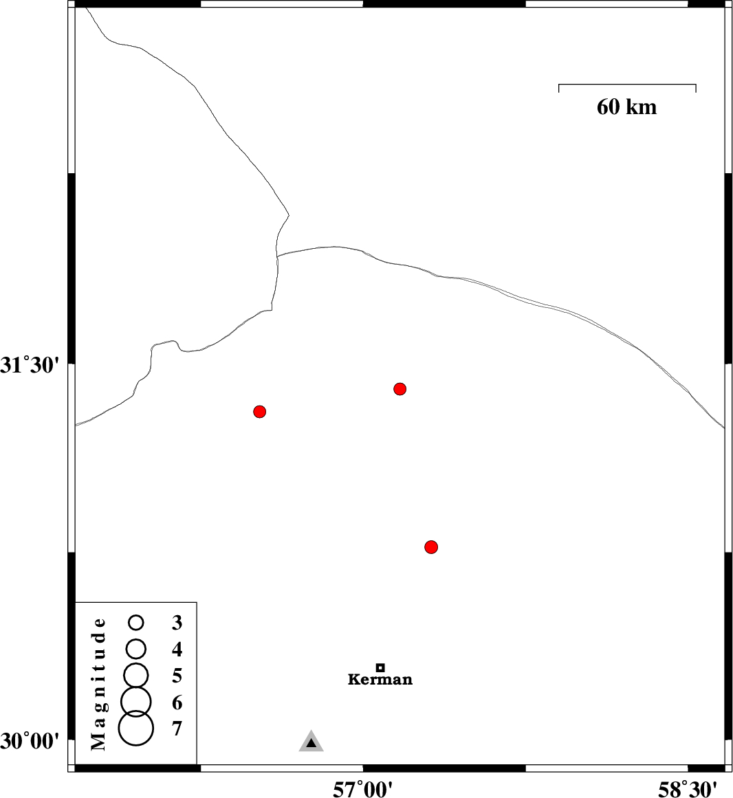 | 2018/05/21 | 23:47:03.2 | 04:17:03.2 | 30.771 | 57.313 | 14 | ML2.7 | Kerman Province, 58 km North-East of Kerman |