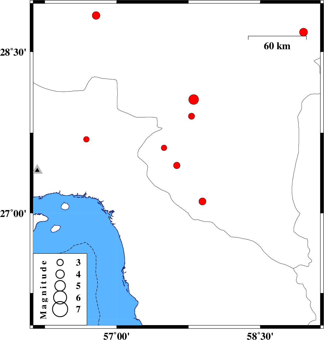 2018/05/26 12:37:57.9 17:07:57.9 27.6956.68418 ML2.7 Hormozgan Province, 62 km North-West of Dehbarez