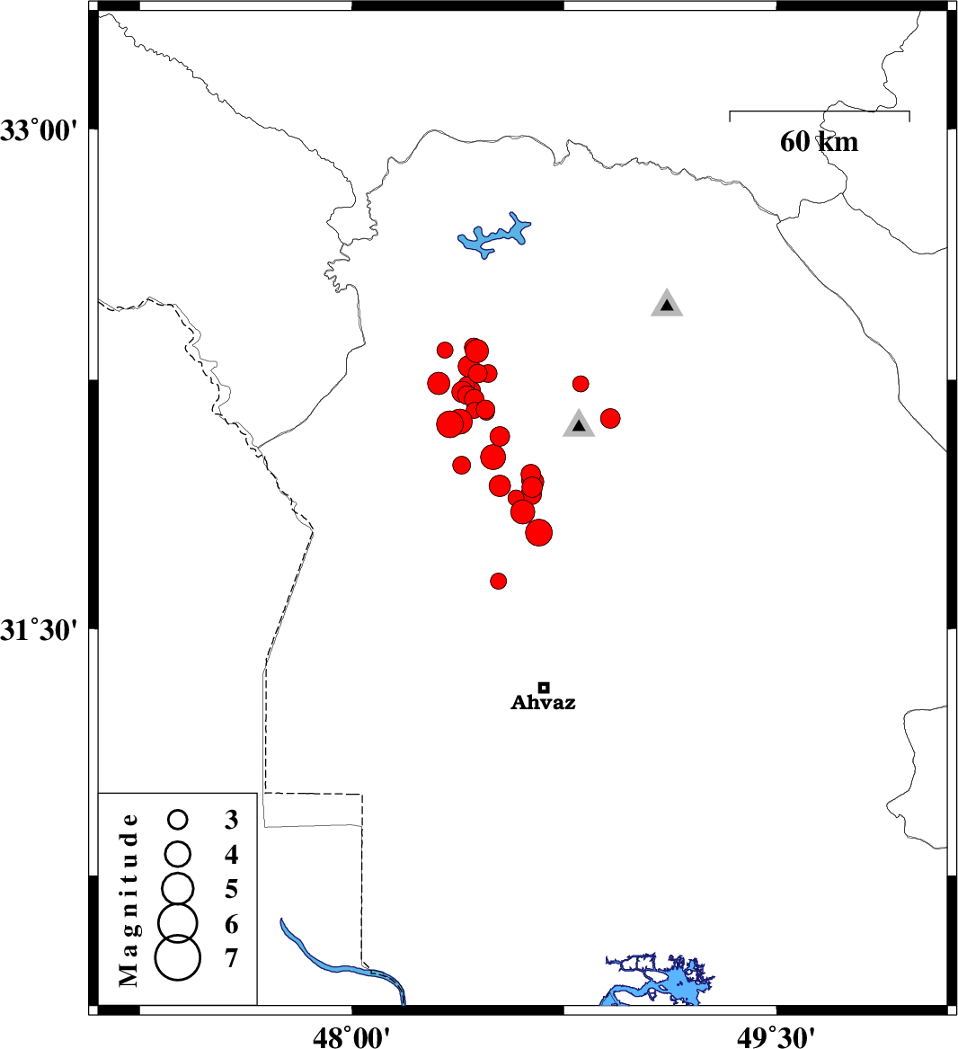 2018/05/27 02:51:44.5 07:21:44.5 32.0848.52215 ML3.1 Khoozestan Province, 31 km -West of Shushtar