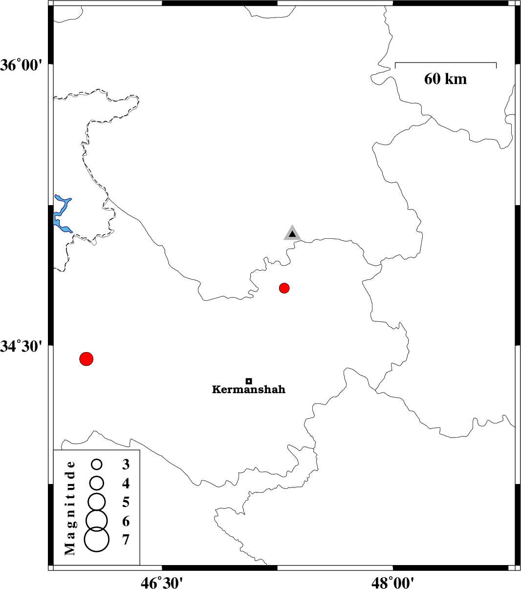 | 2018/06/06 | 00:07:07.5 | 04:37:07.5 | 34.426 | 46.008 | 15 | ML3.9 | Kermanshah Province, 12 km -East of Sar-e pol-e zahab |