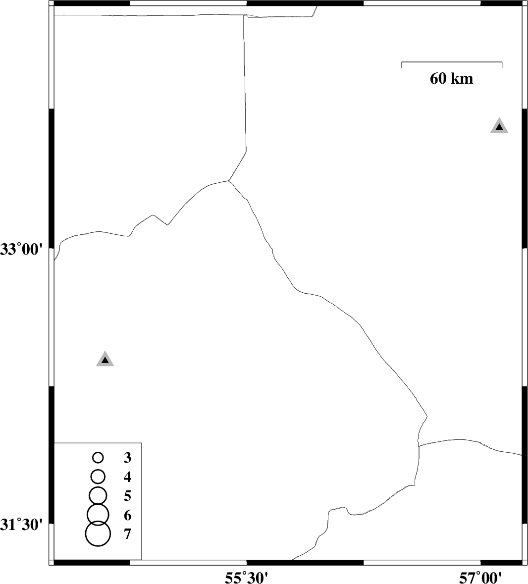 | 2018/06/06 | 10:40:37.5 | 15:10:37.5 | 32.8 | 55.765 | 17 | ML3.9 | Yazd Province, 138 km North-East of Bafq |