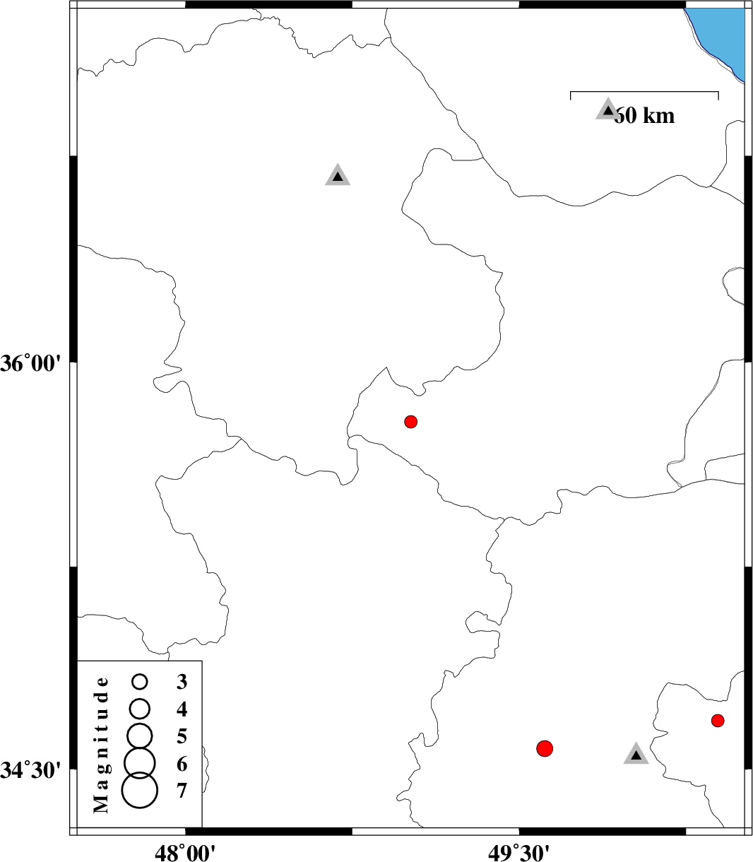| 2018/06/06 | 11:45:46.9 | 16:15:46.9 | 34.68 | 50.393 | 15 | ML2.5 | Qom Province, 38 km South of Saveh |