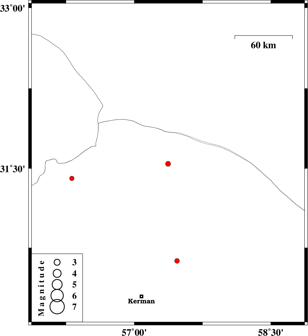 | 2018/06/11 | 09:58:01.1 | 14:28:01.1 | 30.626 | 57.469 | 14 | ML2.4 | Kerman Province, 53 km North-East of Kerman | ||