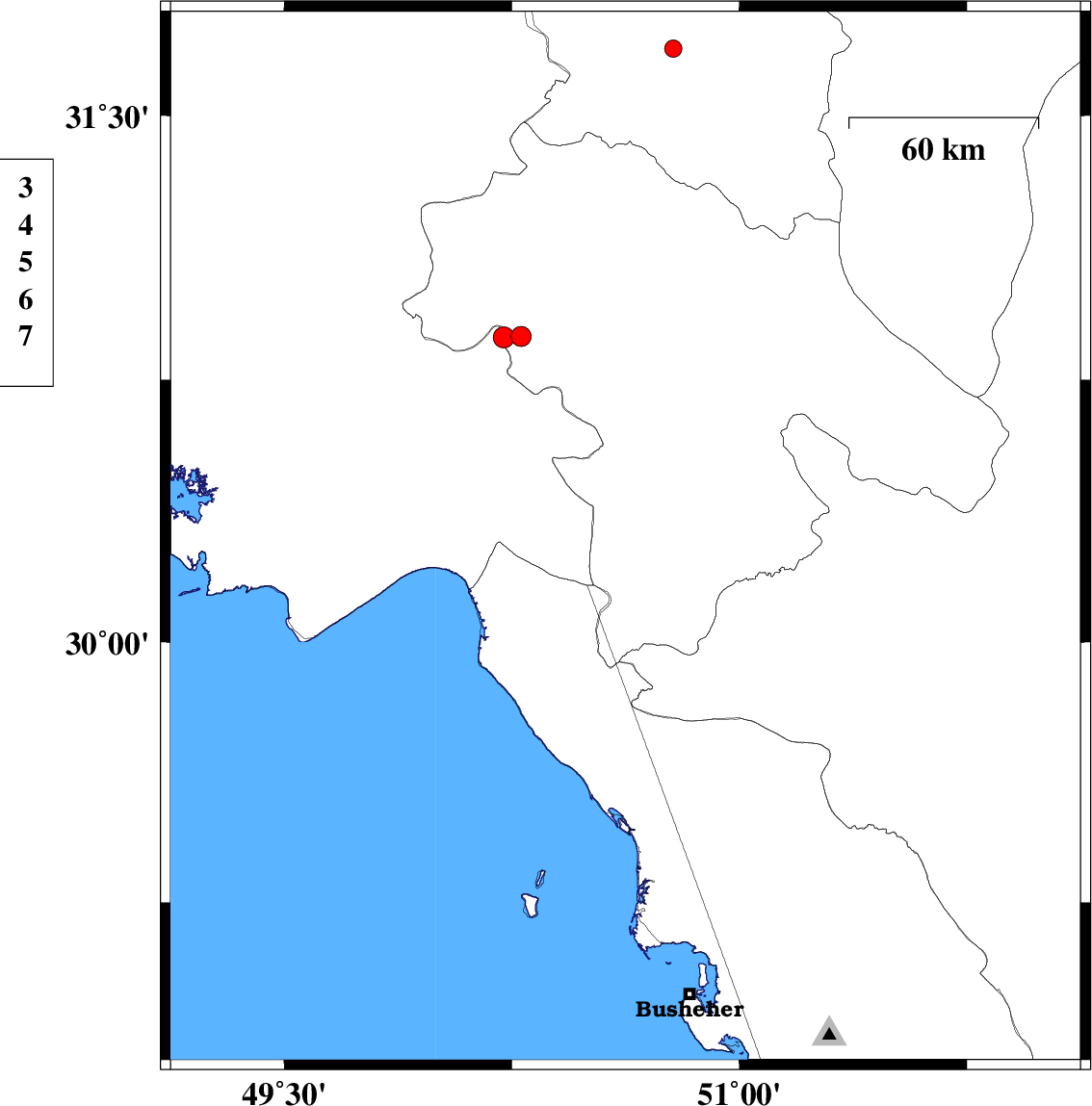 2018/05/20 14:49:54.1 19:19:54.1 28.93851.17314 ML3.1 Bushehr Province, 11 km of Ahram