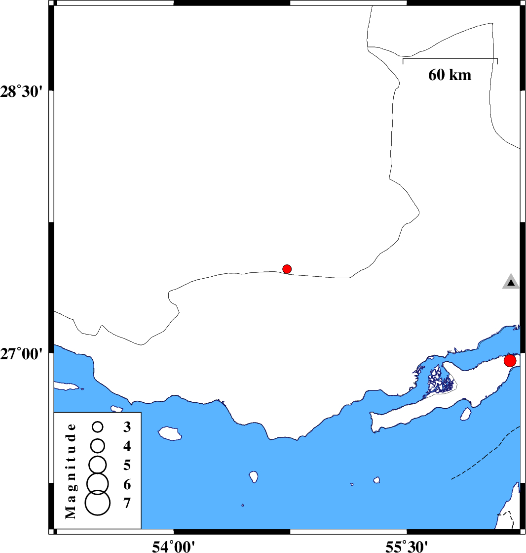 | 2018/06/13 | 18:25:23.8 | 22:55:23.8 | 27.482 | 54.729 | 15 | ML2.5 | Fars Province, 44 km South-East of Lar | ||