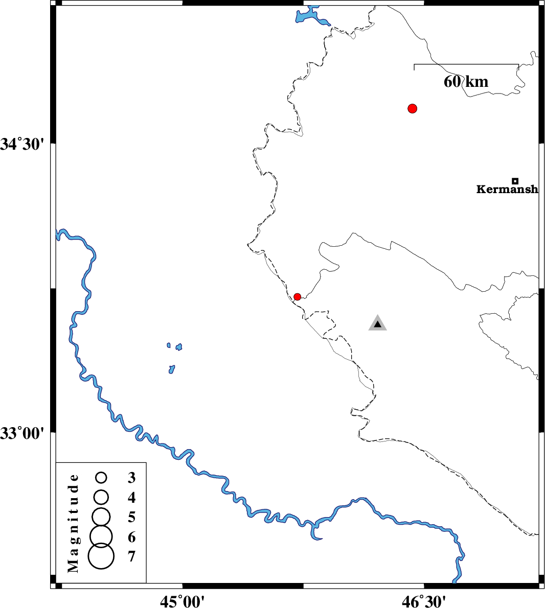 | 2018/06/14 | 00:06:36.5 | 04:36:36.5 | 33.706 | 45.712 | 14 | ML2 | Kermanshah Province, 52 km South-West of Gilan-E-Gharb | ||