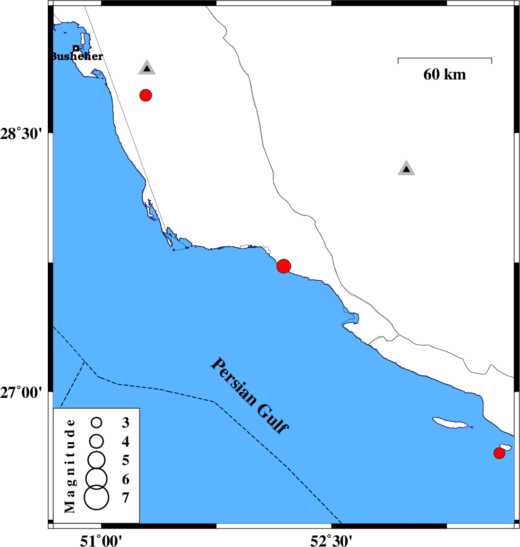 | 2018/06/17 | 12:18:03.7 | 16:48:03.7 | 28.715 | 51.29 | 14 | ML3.5 | Bushehr Province, 11 km of Khormog |