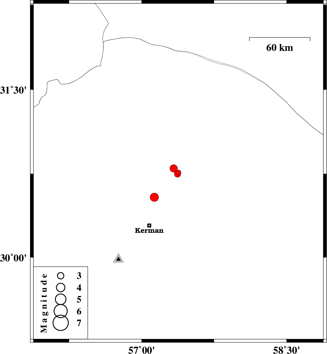 | 2018/06/23 | 00:23:00.2 | 04:53:00.2 | 30.748 | 57.371 | 14 | ML2.9 | Kerman Province, 58 km North-East of Kerman | ||