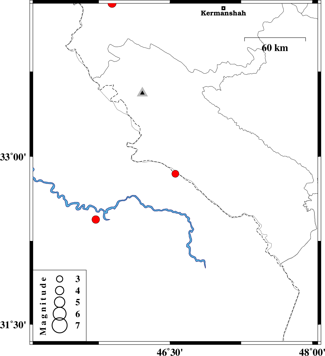 | 2018/06/28 | 20:26:23.6 | 00:56:23.6 | 32.848 | 46.557 | 15 | ML3.4 | , 47 km South-East of Mehran | ||