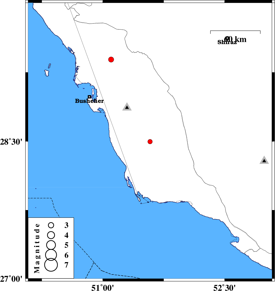 | 2018/06/28 | 22:16:16.1 | 02:46:16.1 | 29.387 | 51.103 | 14 | ML2.9 | Bushehr Province, 17 km North-West of Borazjan |