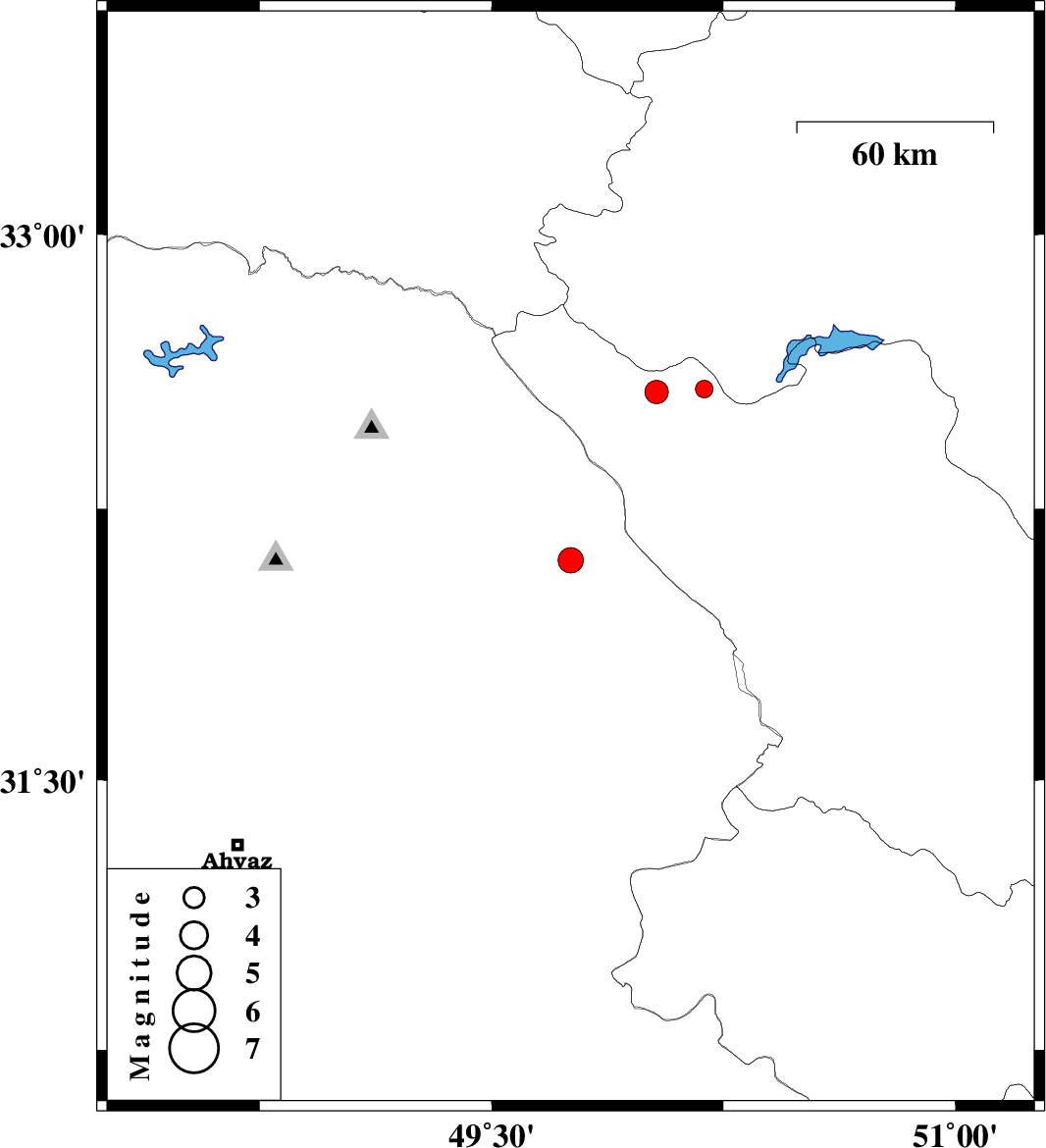 | 2018/06/29 | 05:15:20.7 | 09:45:20.7 | 32.578 | 50.188 | 14 | ML2.5 | Chaharmahal Bakhtiari Province, 14 km North of Chelgard |
