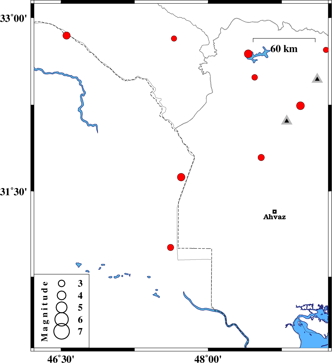 , 47 km South-East of Mehran | |