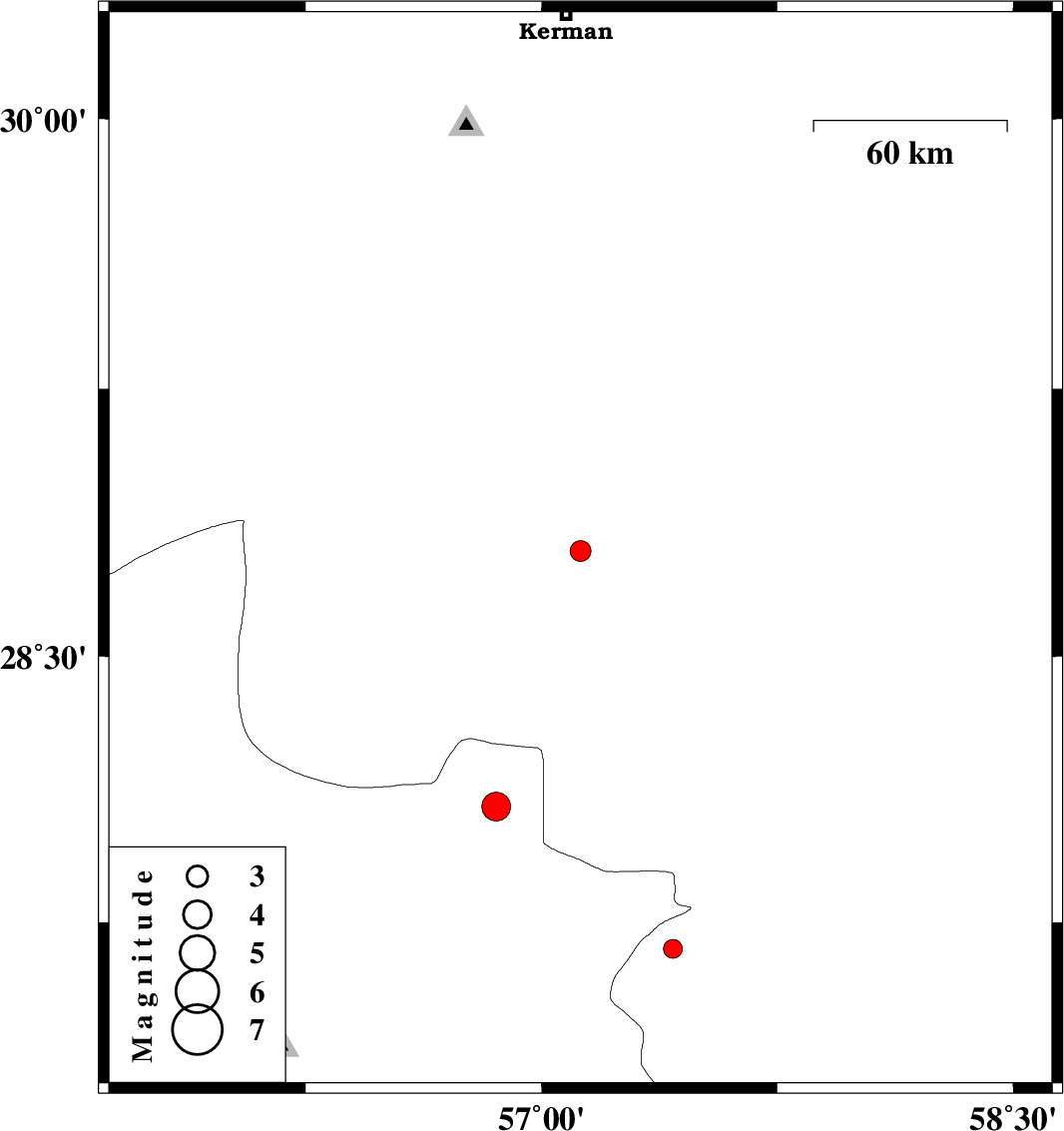 | 2018/07/09 | 08:24:36.1 | 12:54:36.1 | 28.796 | 57.124 | 14 | ML3 | Kerman Province, 62 km North-West of Jiroft | ||