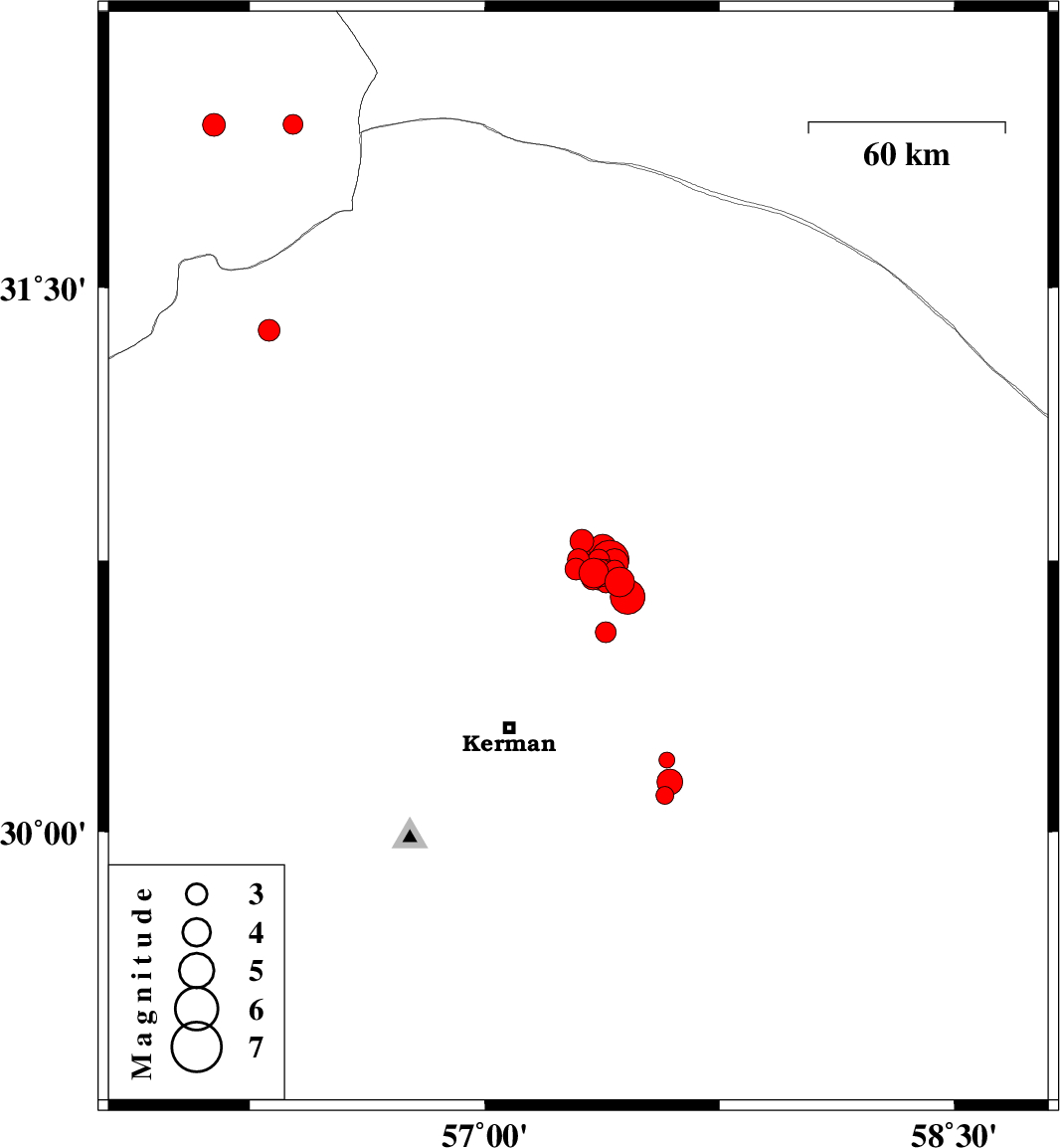 2017/12/01 04:33:27.2 08:03:27.2 30.72757.38814 ML2.7 Kerman Province, 57 km North-East of Kerman