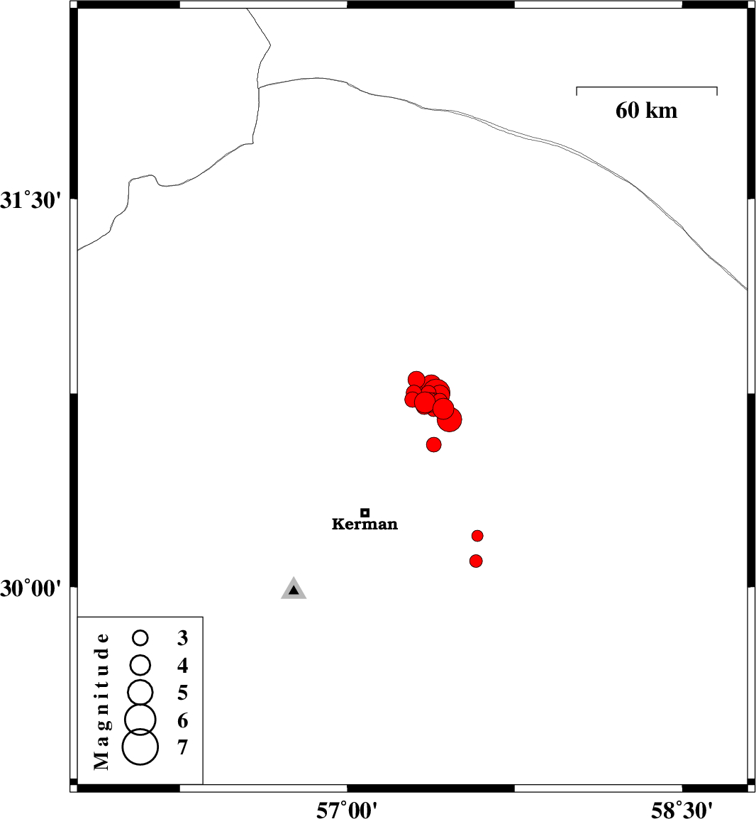 2017/12/01 04:33:27.2 08:03:27.2 30.72757.38814 ML2.7 Kerman Province, 57 km North-East of Kerman