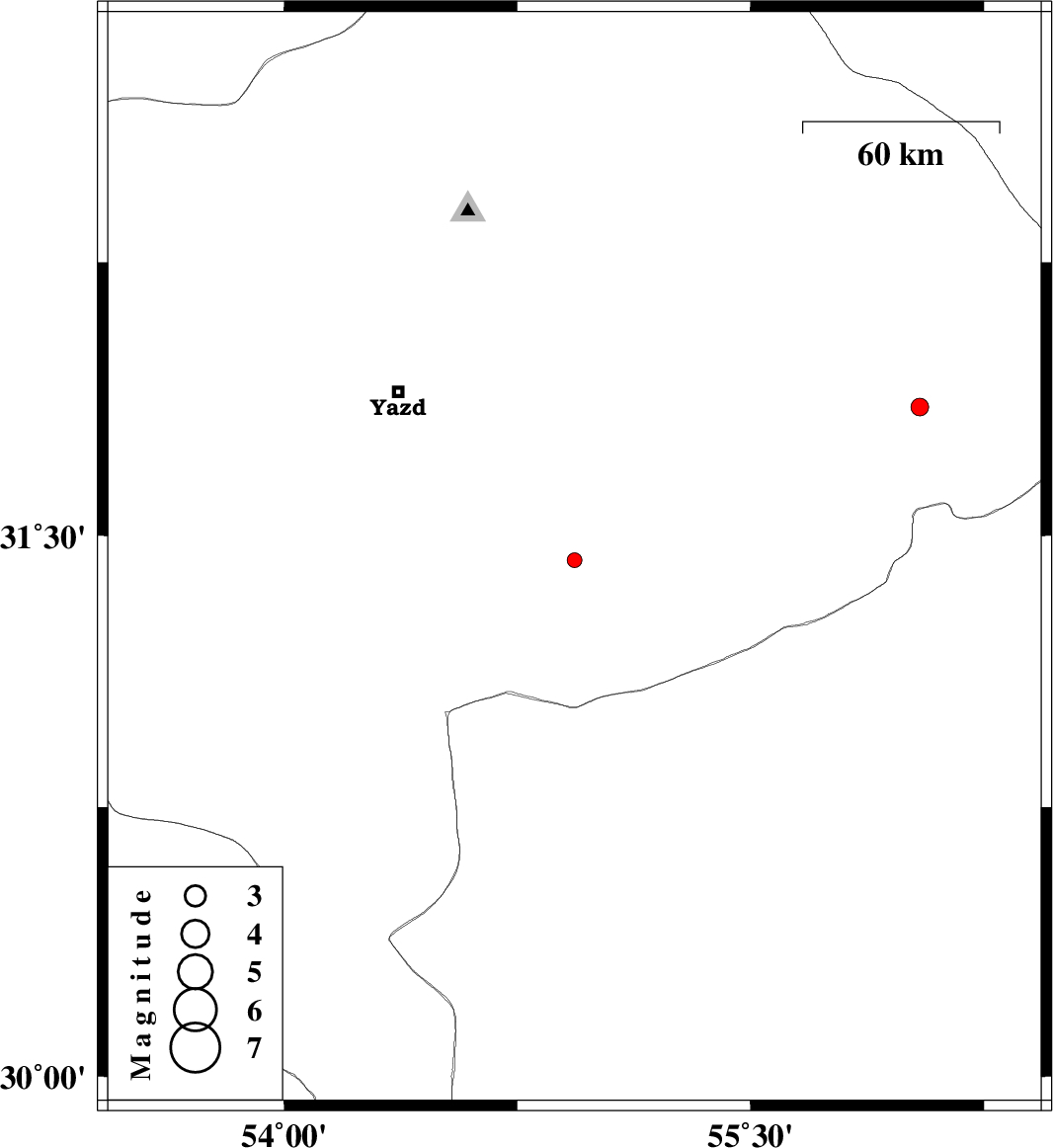 | 2018/07/14 | 01:34:35.9 | 06:04:35.9 | 31.854 | 56.044 | 15 | ML2.5 | Yazd Province, 67 km North-East of Bafq |