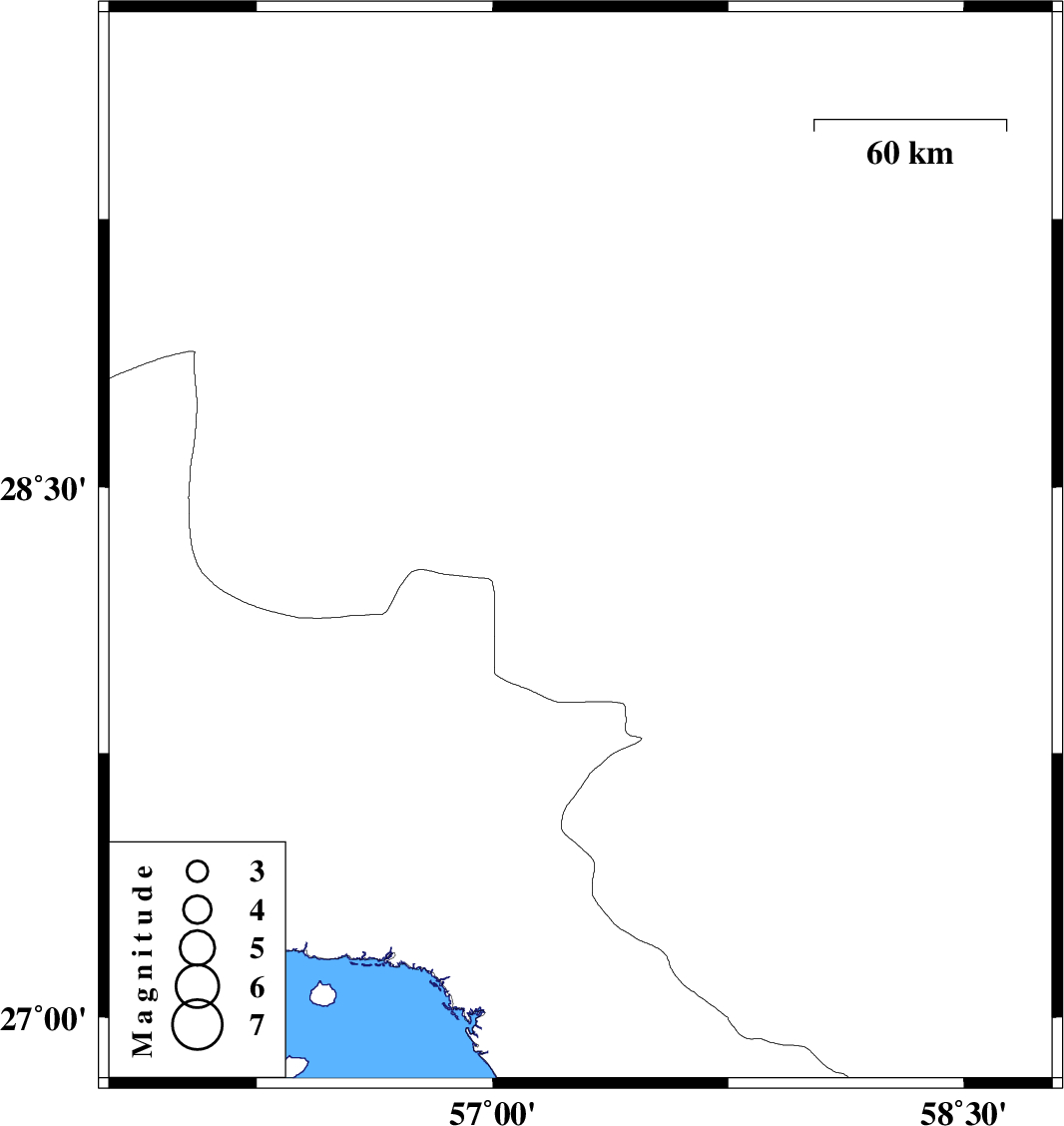| 2018/07/26 | 14:38:32.6 | 19:08:32.6 | 28.328 | 57.28 | 14 | ML3.8 | Kerman Province, 58 km North-West of Kahnuj |