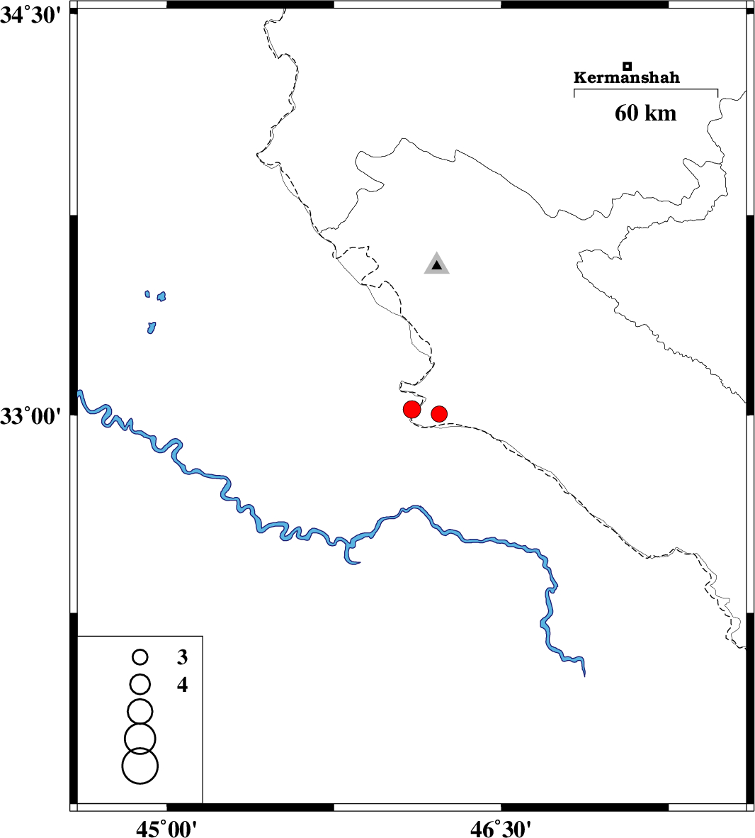 | 2018/08/08 | 06:22:19.4 | 10:52:19.4 | 33.021 | 46.099 | 7 | ML3.5 | Iraq, 13 km of Mehran |