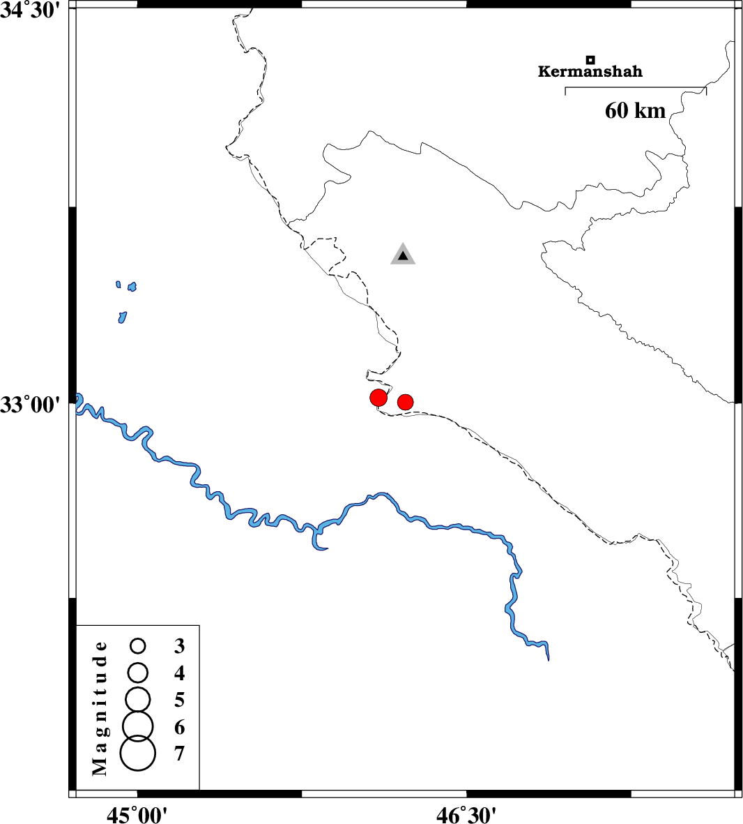 | 2018/08/08 | 06:22:19.4 | 10:52:19.4 | 33.021 | 46.099 | 7 | ML3.5 | Iraq, 13 km of Mehran |