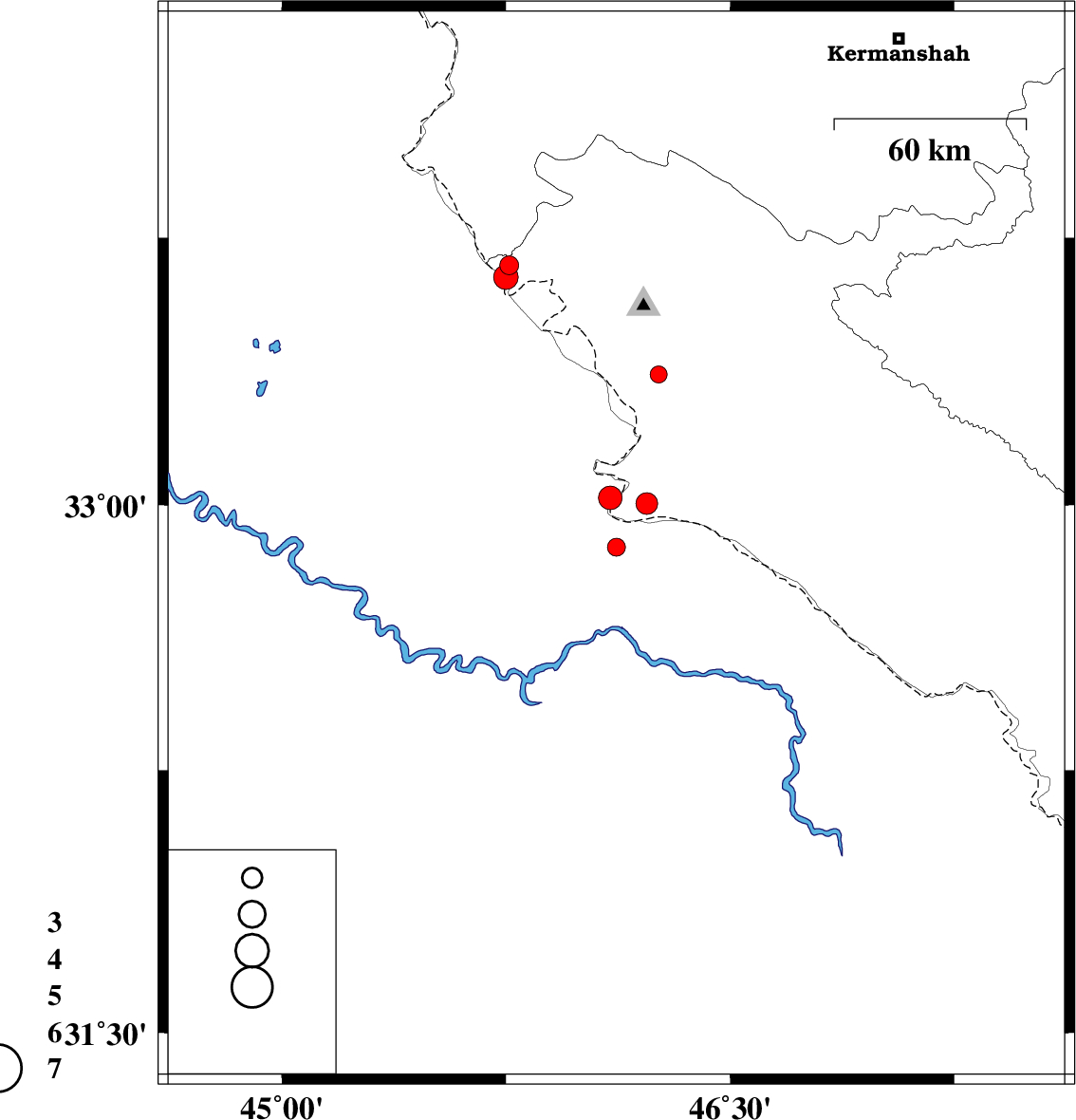 2018/08/12 | 04:16:21.9 | 08:46:21.9 | 32.882 | 46.119 | 6 | ML2.7 | Iraq, 27 km South of Mehran | ||