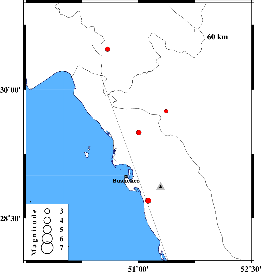 | 2018/08/15 | 03:04:34.0 | 07:34:34.0 | 29.502 | 51.006 | 10 | ML2.9 | Bushehr Province, 33 km North-West of Borazjan | ||