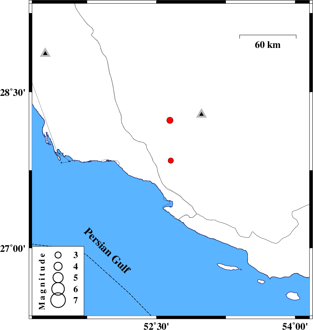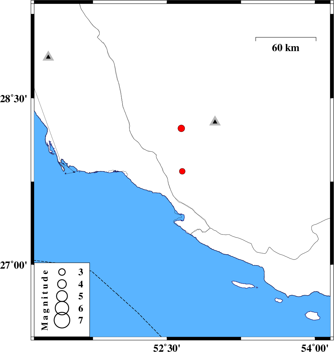 | 2018/08/17 | 03:30:47.3 | 08:00:47.3 | 28.229 | 52.646 | 7 | ML3.1 | Fars Province, 46 km South-West of Qir va Karzin |