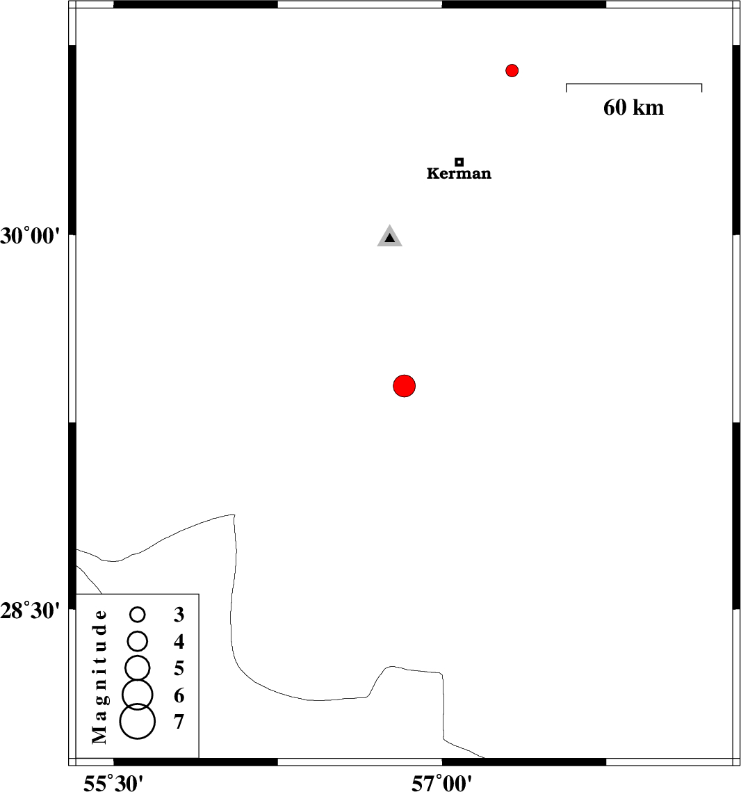 | 2018/08/17 | 02:39:06.6 | 07:09:06.6 | 30.65 | 57.319 | 14 | ML2.6 | Kerman Province, 46 km North-East of Kerman |