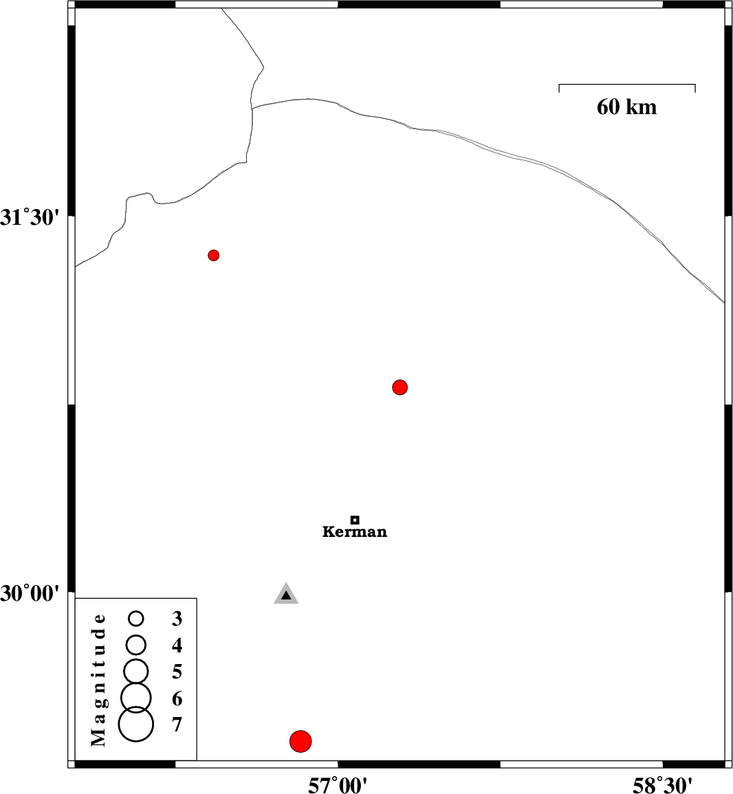 | 2018/08/26 | 18:46:42.7 | 23:16:42.7 | 30.819 | 57.286 | 14 | ML3.1 | Kerman Province, 69 km -East of Zarand | ||