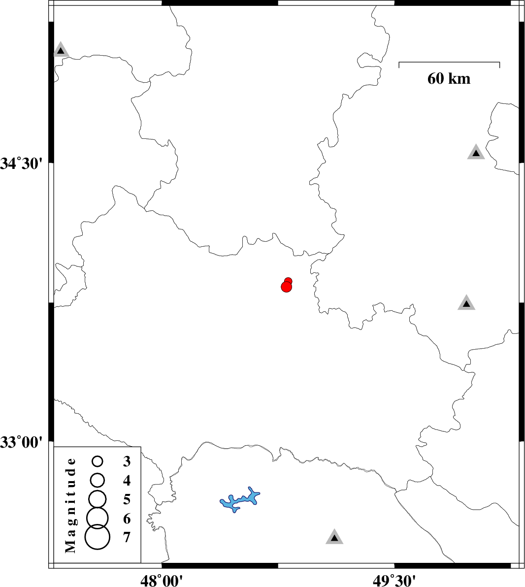 | 2018/08/27 | 22:57:29.2 | 03:27:29.2 | 33.836 | 48.803 | 15 | ML3.1 | Lorestan Province, 8 km of Borujerd | ||
