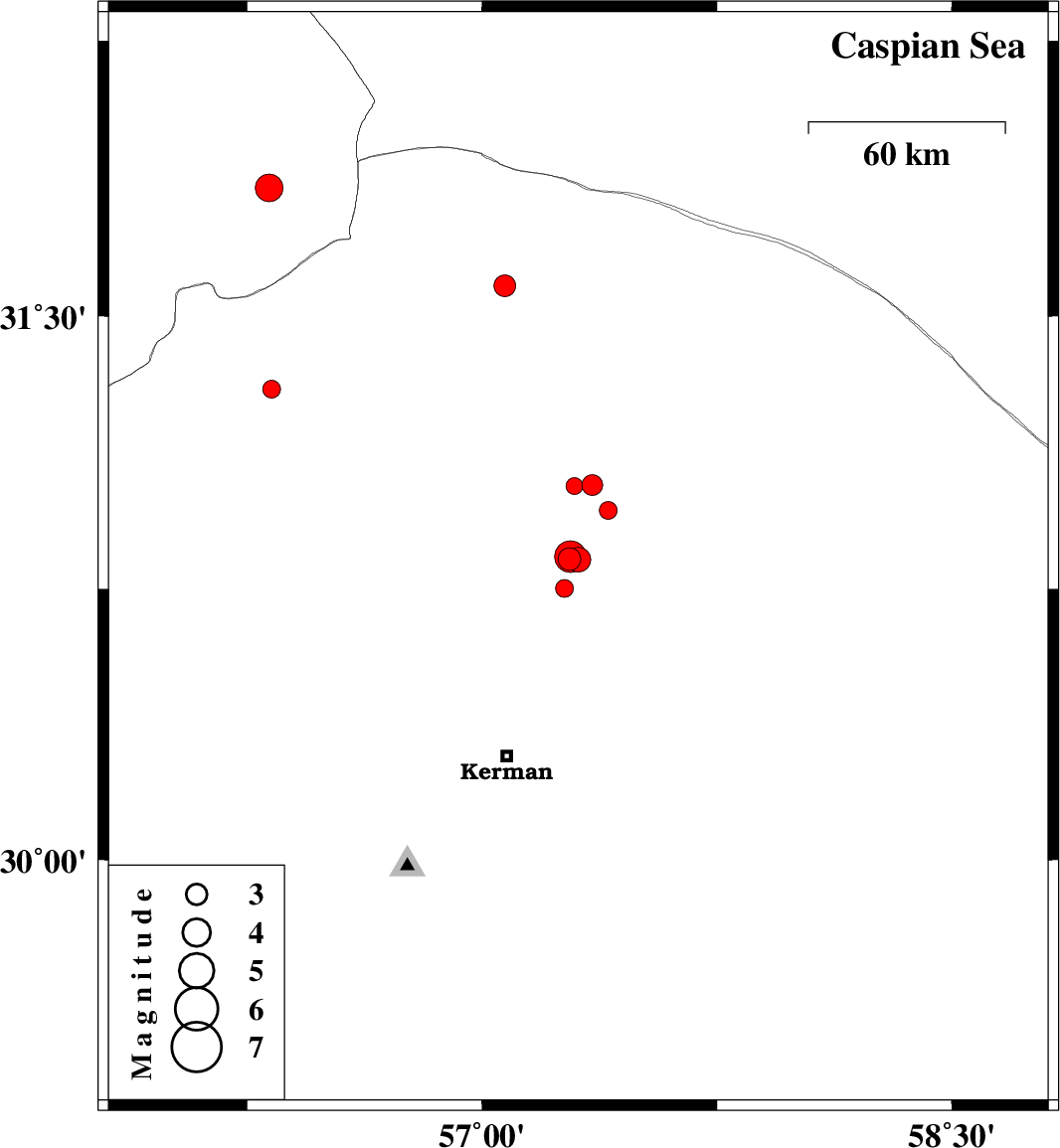 2018/09/08 15:19:41.6 19:49:41.6 30.75157.26218 ML2.6 Kerman Province, 54 km North-East of Kerman