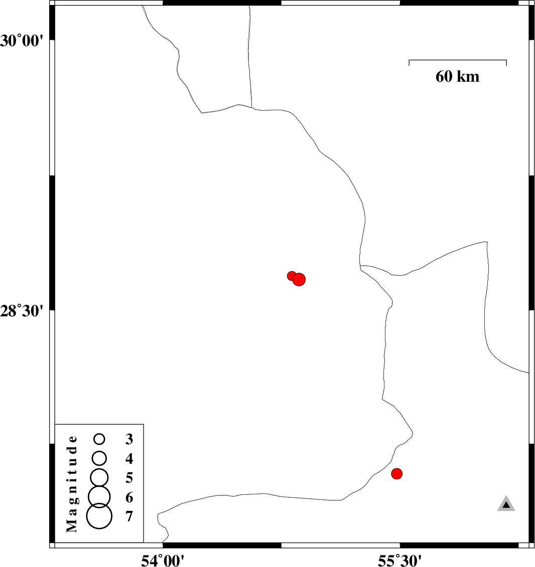 2018/09/15 21:37:56.5 02:07:56.5 28.6754.86114 ML3.7 Fars Province, 33 km -East of Darab