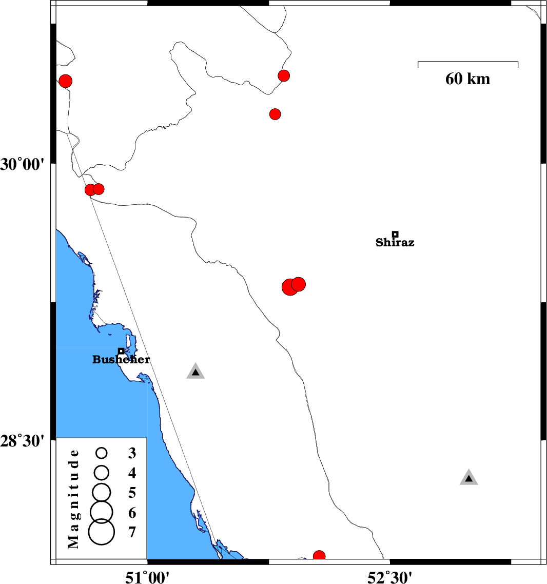 2018/09/10 12:51:46.5 17:21:46.5 29.86250.69616 ML3.1 Fars Province, 36 km North-East of Bandar-e genaveh