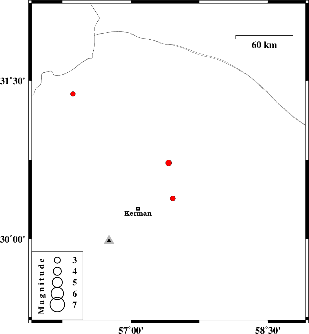 | 2018/09/25 | 22:37:00.2 | 02:07:00.2 | 30.386 | 57.459 | 14 | ML2.6 | Kerman Province, 38 km -East of Kerman | ||