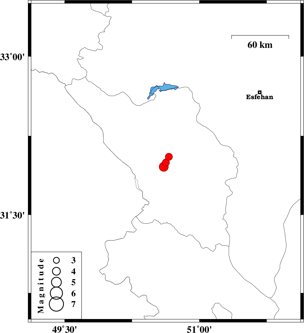 | 2018/10/02 | 03:10:51.7 | 06:40:51.7 | 31.997 | 50.627 | 15 | ML3.7 | Chaharmahal Bakhtiari Province, 3 km of Ardel | ||