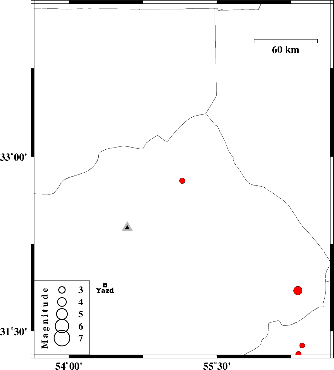 | 2018/09/11 | 01:03:19.8 | 05:33:19.8 | 31.85 | 56.32 | 15 | ML4 | Yazd Province, 80 km North-West of Ravar | ||