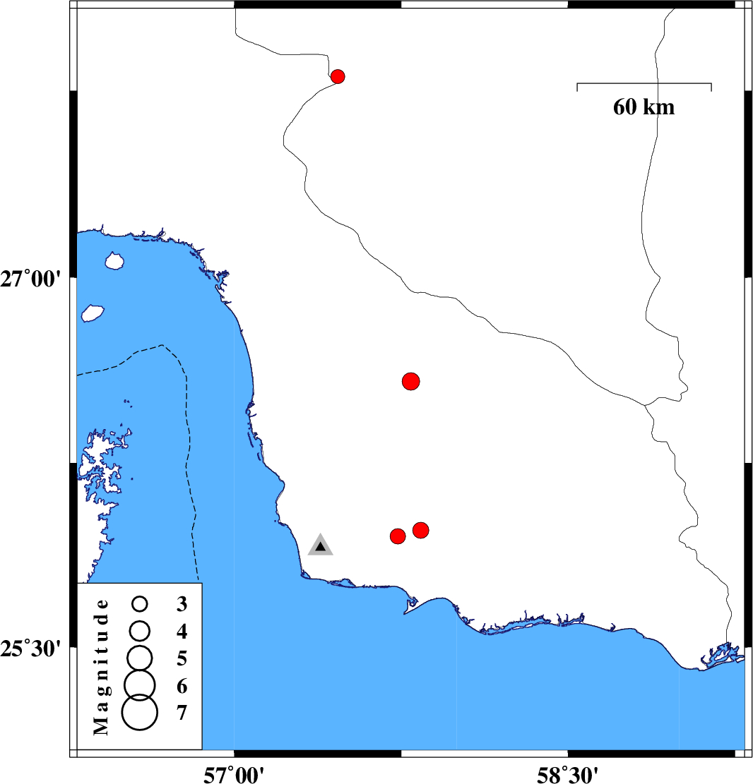 | 2018/10/04 | 03:10:04.4 | 06:40:04.4 | 25.976 | 57.838 | 15 | ML3.2 | Hormozgan Province, 39 km North of Jask |