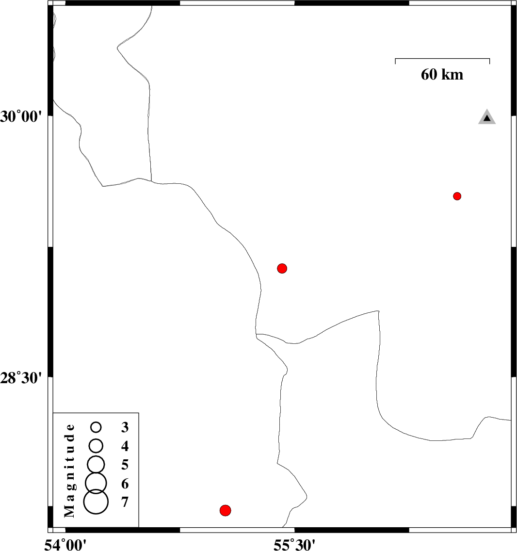 | 2018/10/02 | 10:53:15.2 | 14:23:15.2 | 27.725 | 55.047 | 15 | ML3.2 | Fars Province, 70 km -East of Lar |