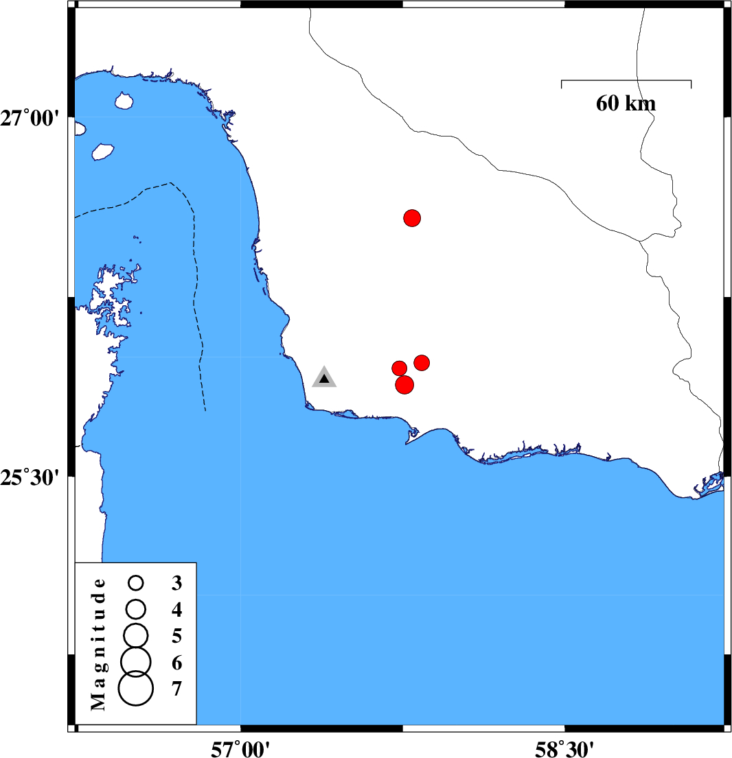 | 2018/10/04 | 03:10:04.4 | 06:40:04.4 | 25.976 | 57.838 | 15 | ML3.2 | Hormozgan Province, 39 km North of Jask | ||