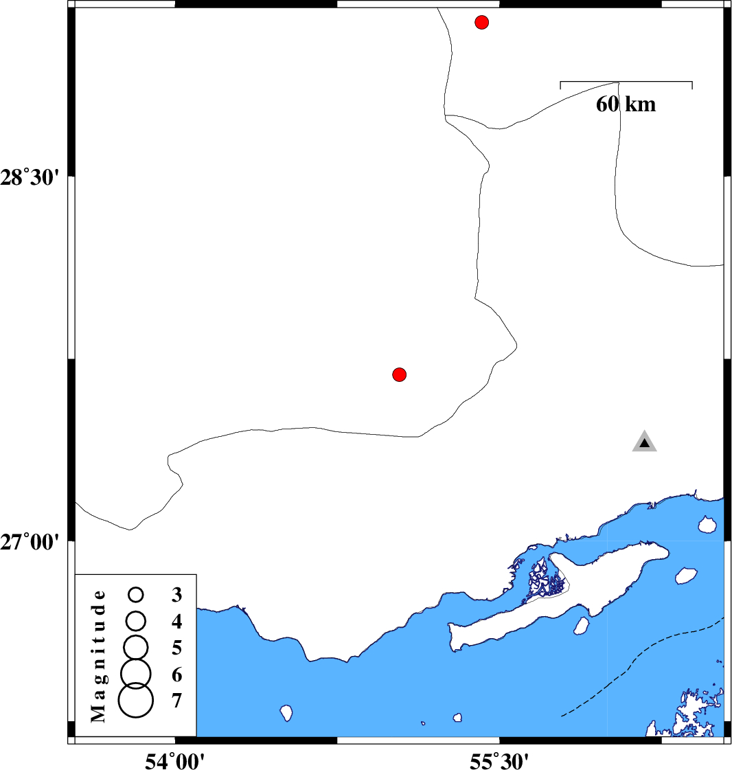 | 2018/10/15 | 15:09:06.2 | 18:39:06.2 | 27.686 | 55.037 | 14 | ML2.8 | Fars Province, 69 km -East of Lar | ||