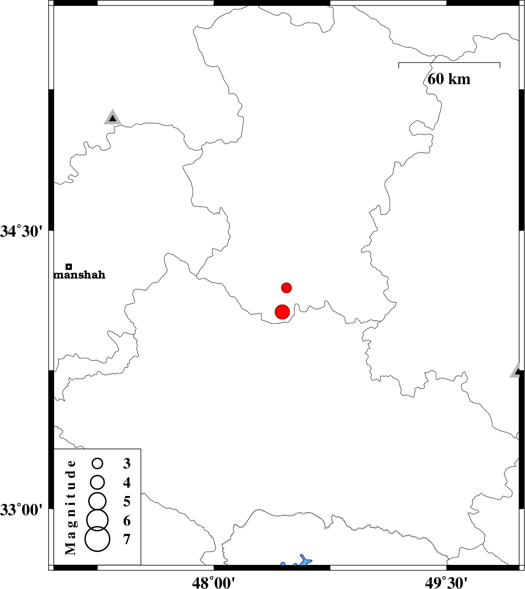 | 2018/10/22 | 03:49:19.1 | 07:19:19.1 | 34.193 | 48.468 | 15 | ML3 | Hamedan Province, 10 km -East of Nahavand | ||