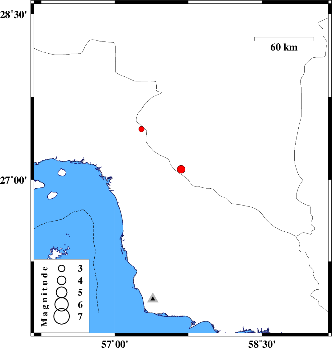 | 2018/10/20 | 16:05:45.3 | 19:35:45.3 | 27.46 | 57.272 | 14 | ML2.5 | Hormozgan Province, 5 km of Dehbarez |