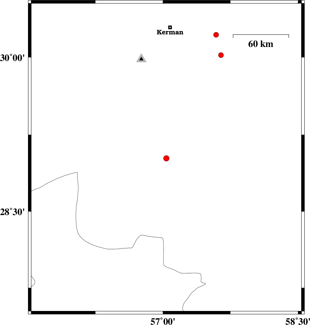 | 2018/10/21 | 16:36:15.2 | 20:06:15.2 | 30.216 | 57.591 | 14 | ML2.6 | Kerman Province, 50 km -East of Kerman |